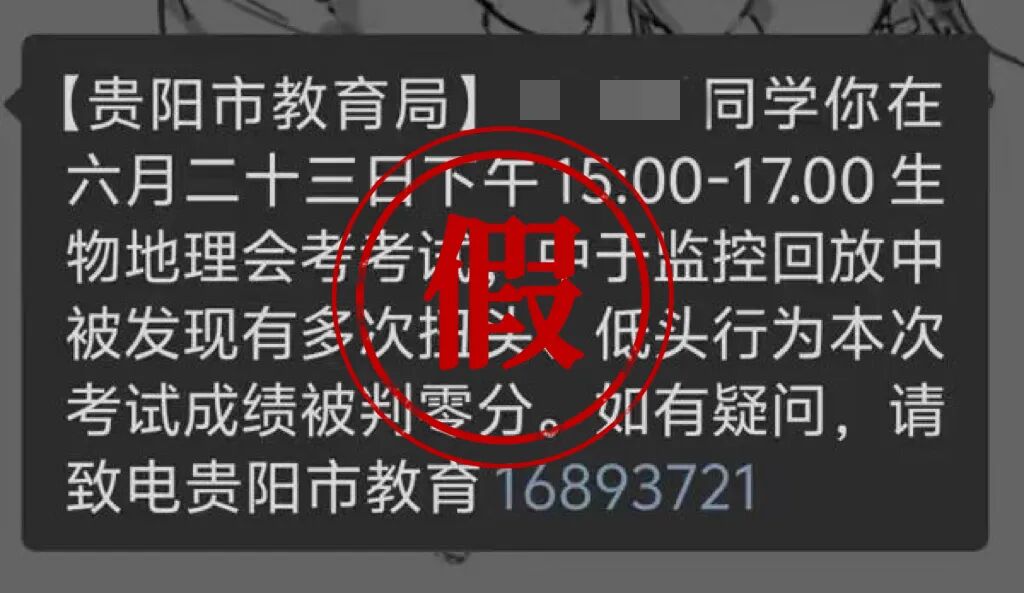 近日,贵阳市教育局收到学生家长反映,称接到短信告知孩子在中考中存在疑似作弊行为,成绩被判零分,并附有联系电话。