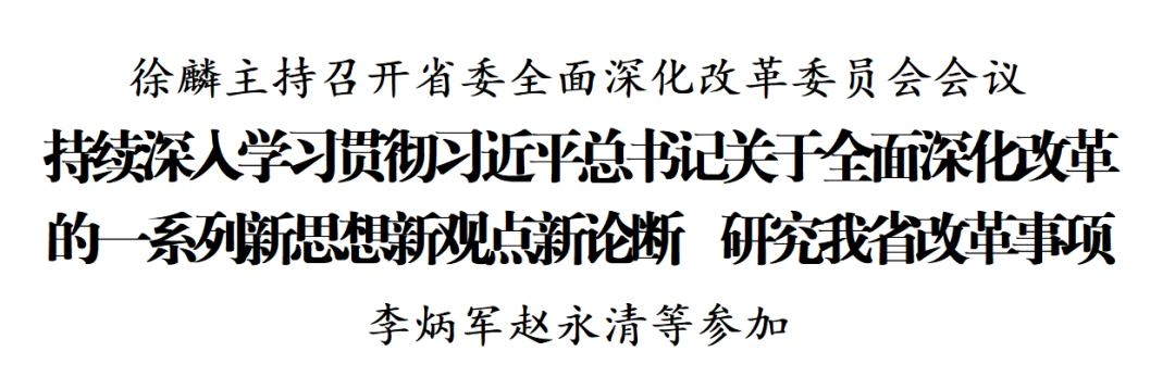 9月29日,省委书记、省委全面深化改革委员会主任徐麟主持召开省委全面深化改革委员会会议,持续深入学习贯彻习近平总书记关于全面深化改革的一系列新思想、新观点、新论断,听取我省有关改革工作落实情况汇报,研究相关改革事项。