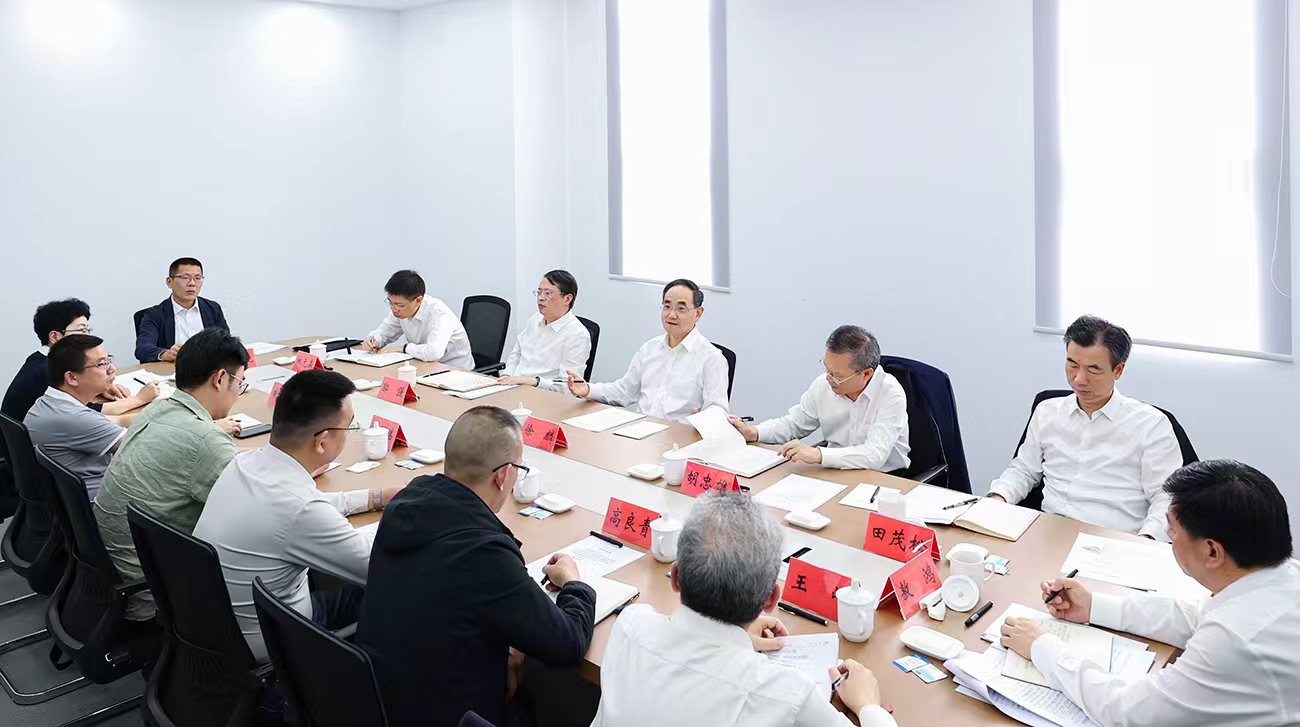 图为徐麟主持召开座谈会,与企业负责人交流,了解企业发展情况,听取意见建议等。