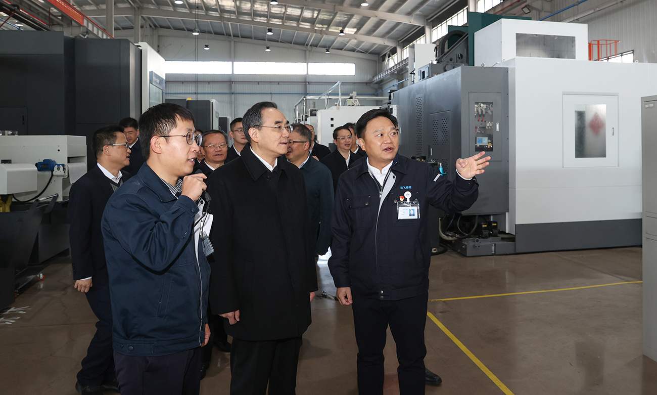 图为徐麟在贵州航飞精密制造公司考察,了解企业规划发展、技术创新等情况。