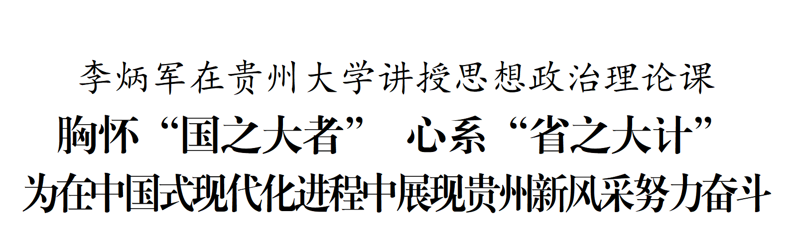12月17日,省委副书记、省长李炳军到贵州大学讲授思想政治理论课,围绕学习贯彻党的二十届四中全会精神和习近平总书记在贵州考察时的重要讲话精神,全面落实省委十三届八次全会部署,与广大师生交流,希望大家胸怀“国之大者”,心系“省之大计”,为在中国式现代化进程中展现贵州新风采努力奋斗。