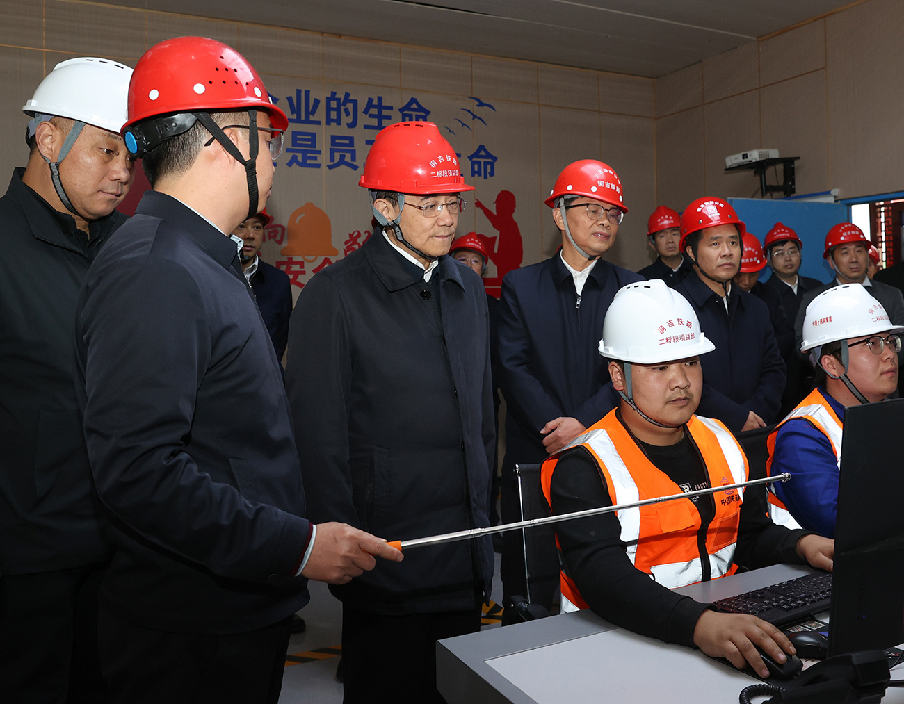 图为徐麟在铜吉铁路铜岩隧道考察,了解工程进度、安全生产等情况。