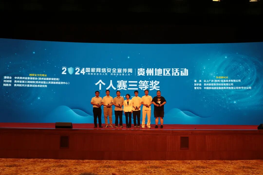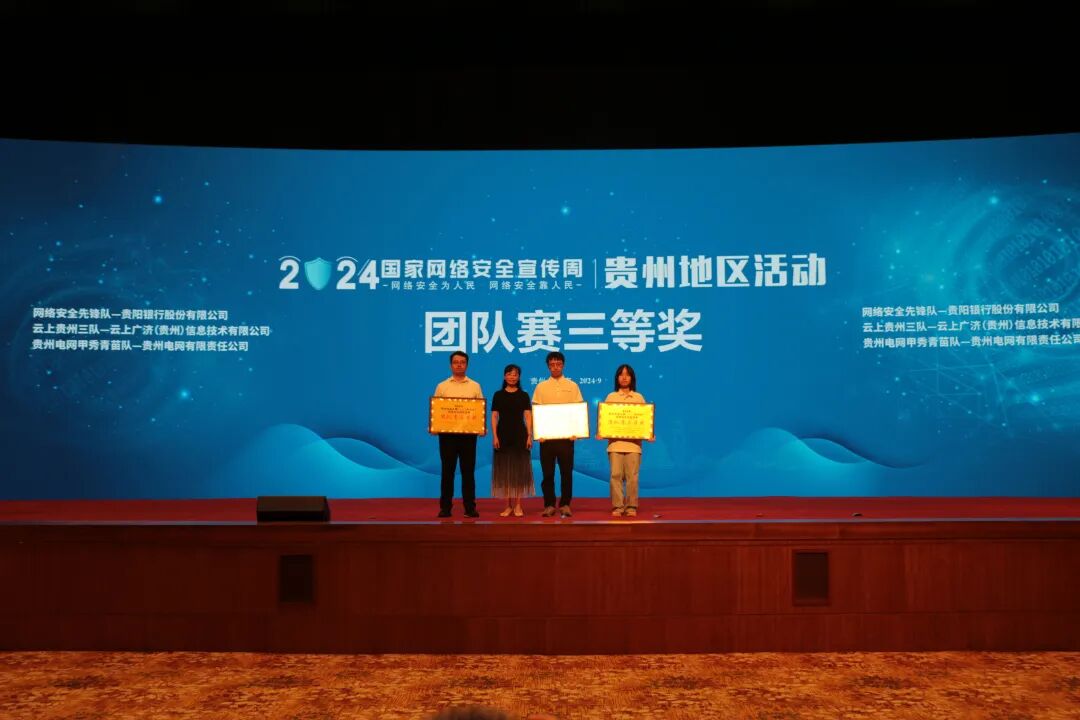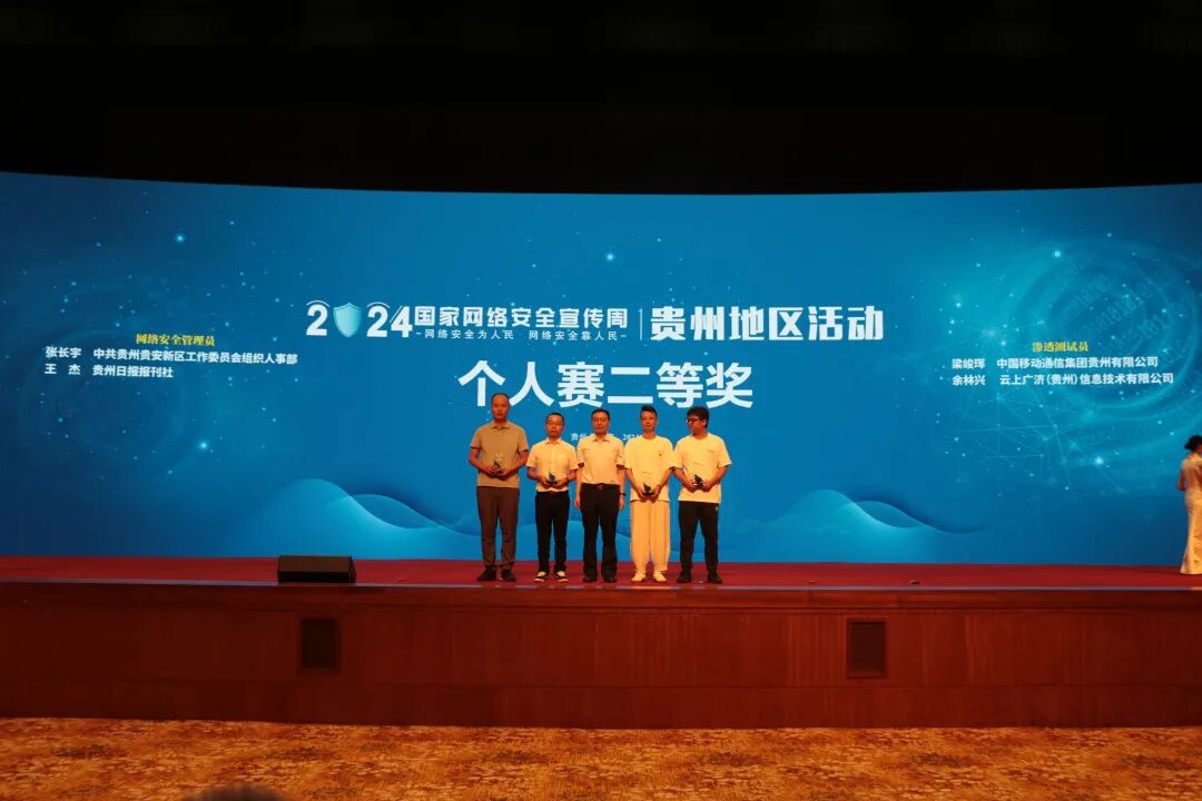 9月9日,2024年国家网络安全宣传周贵州地区活动开幕式在黔西南州兴义市举行。会上,对2024年贵州技能大赛——“网信杯”网络安全技能竞赛获奖团队、个人及优秀领队进行颁奖。